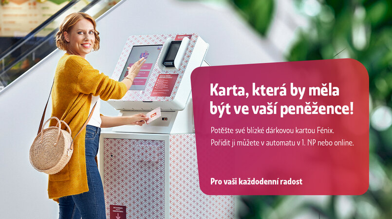 Potěšte své blízké dárkovou kartou Fénix. Pořídíte v prodejním automatu v 1NP v NC Fénix nebo online https://www.ncfenix.cz/darkove-karty