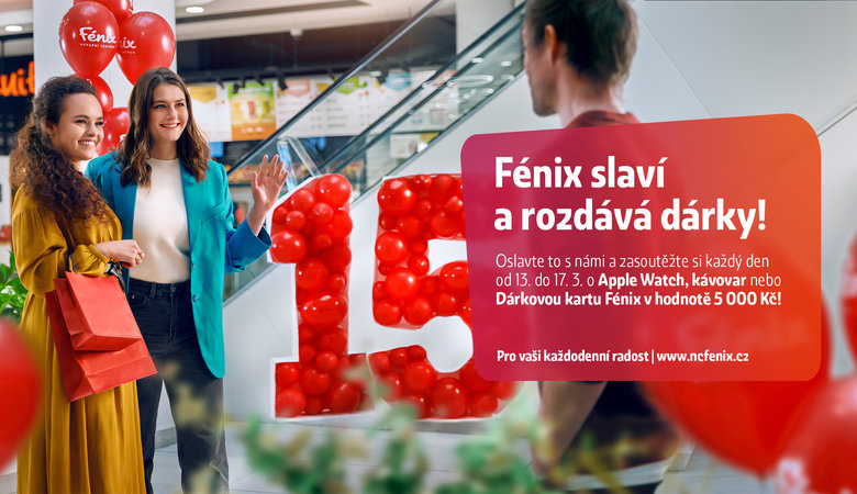 máme velkou radost, že jsme tu pro vás už 15 let. Přijďte k nám do Fénixu oslavit naše výročí. Budeme se na vás těšit od 13. 3. do 17. 3. 2023. Připravili jsme pro vás narozeninový týden plný zábavy a soutěží. Každý den budeme losovat výherce o 3 hlavní ceny. Můžete vyhrát hodinky Apple Watch, kávovar nebo dárkovou kartu Fénix v hodnotě 5 000 Kč.