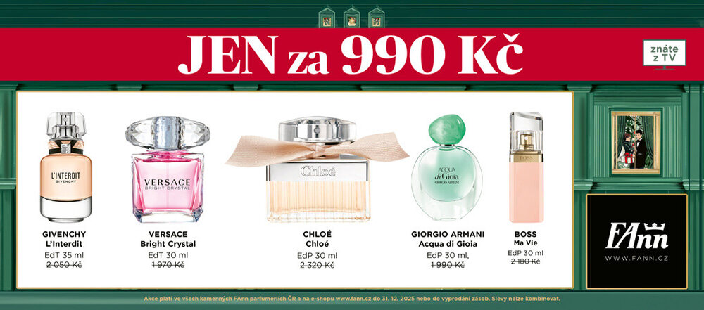 Ve FAnn parfumerii právě voní skvělá nabídka. Ikonické parfémy značek jako Chloé, Armani nebo Lancôme jen za 990 Kč! Dopřejte si kousek luxusu za výjimečnou cenu.