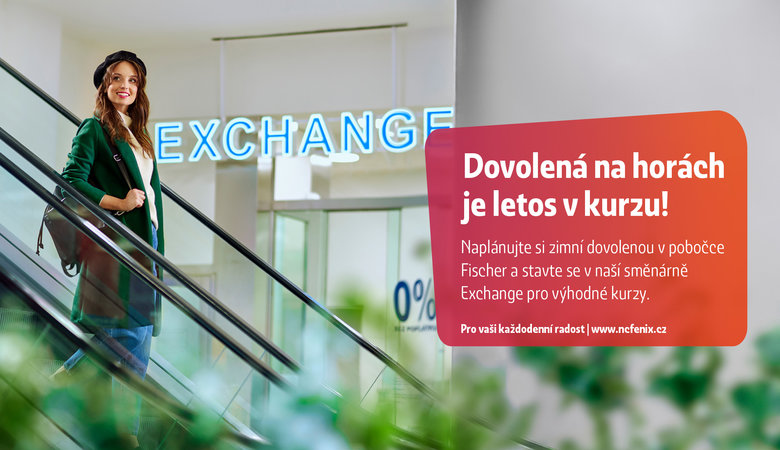 Milí sousedé, naplánujte si zimní nebo letní dovolenou v pobočce Fischer a stavte se ve směnárně Exchange pro výhodné kurzy.